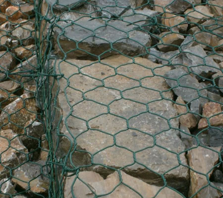 2、鋅-5%鋁-混合稀土鋼絲包塑:在鋅-5%鋁-混合稀土鋼絲的表面包*層pvc保護層,再編織成各種規格的六角網。這層pvc保護層將會大大增加網的使用壽命,并且通過不同顏色的選擇,使其能和周圍的自然環境相融合。